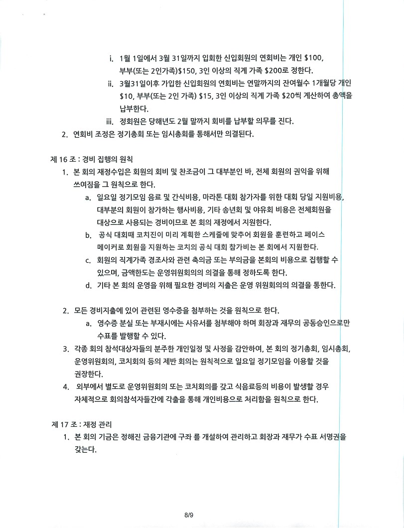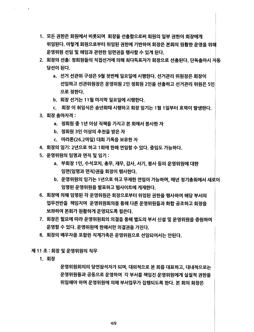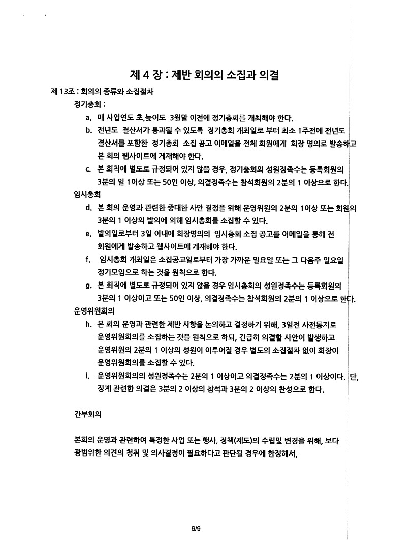 제목Happy Runners 개정회칙(정관)_2022년 6월 26일자 기준2022-07-13 15:26작성자[Happy1] Happy첨부와 같이 금번 개정에 참여하셨던 위원들 전원의 서명이 들어가고 공증이 완료된 개정회칙을 올려드립니다. 목록 이전2023년 해피러너스 지정 공식 마라톤 대회 안내[Happy1] Happy2022-06-01다음2022년 정기총회 소집공고Happy Admin2022-10-31 Powered by MangBoard
